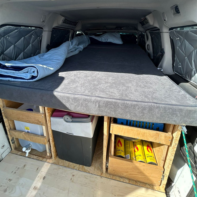 Niezależność prądowa, panel słoneczny, przetwornica 12/230V, natrysk turystyczny zewnętrzny, lodówka turystyczna, kuchenka turystyczna, osłony termiczne. Możliwość podróżowania w 5 osób, wielkość łóżka 120cm x 200cm maksymalnie dla 2 osób.Mini Kampery Z Modułem Box